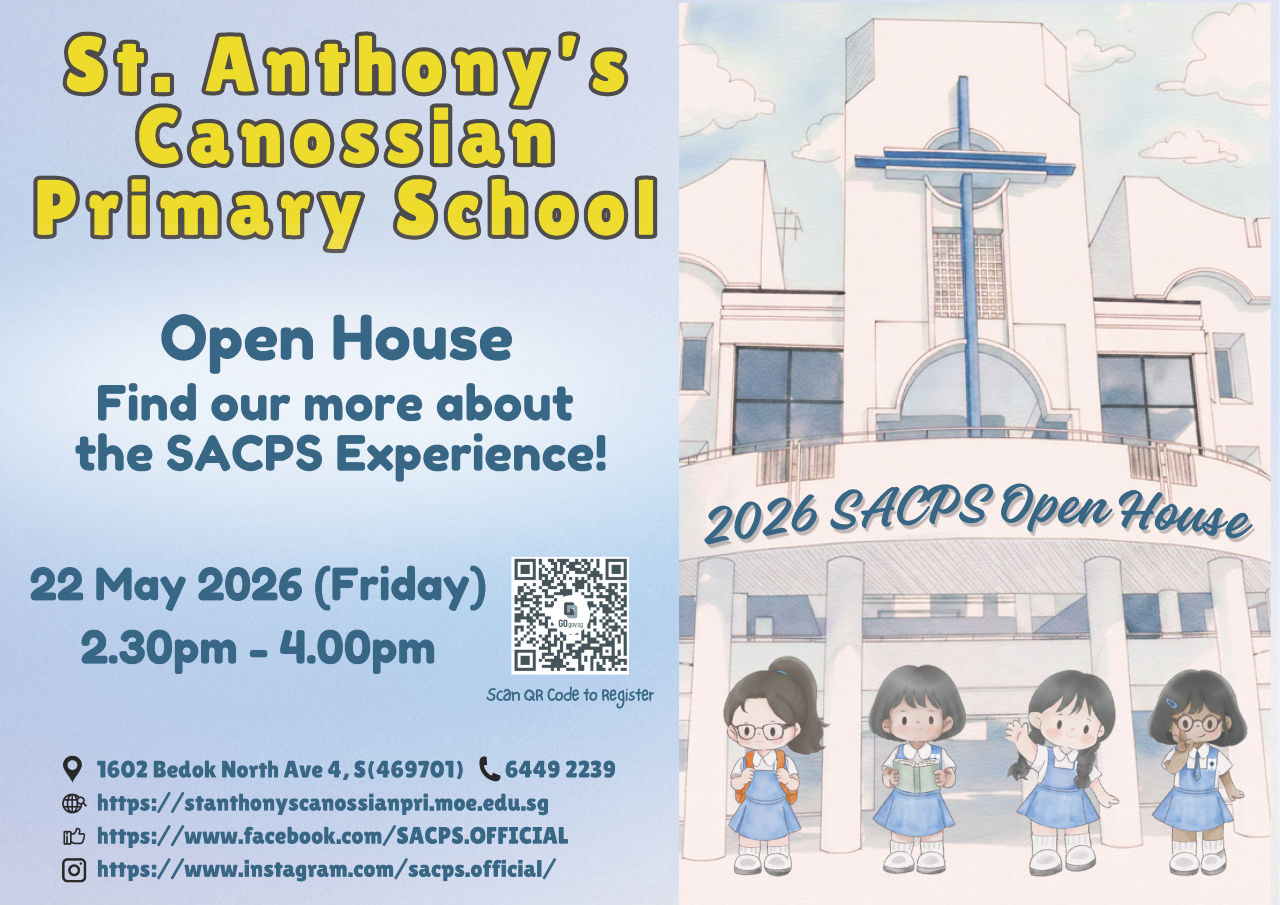 Parents with daughters entering Primary 1 in 2027 are warmly invited to discover the St Anthony’s Canossian Primary School (SACPS) experience. As an all-girls Catholic school, SACPS is dedicated to nurturing students in the Canossian tradition of charity and humility.
